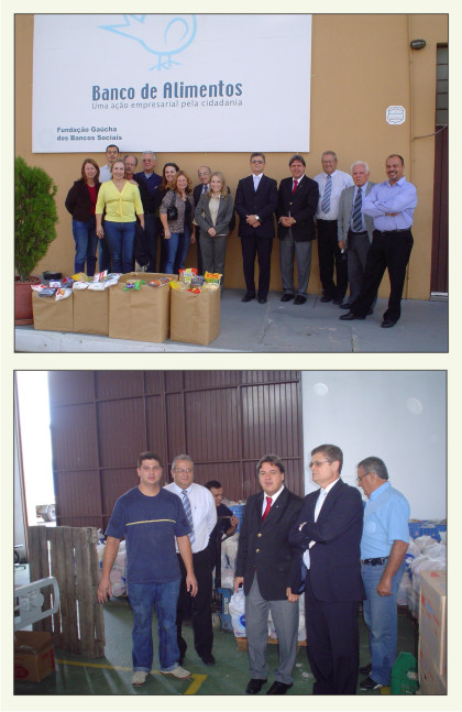 O presidente do Banco de Alimentos do Rio Grande do Sul e diretor superintendente da Fundação Gaúcha dos Bancos Sociais, Paulo Renê Bernhard, recebeu na manhã desta quinta-feira (17/04/08), a visita do juiz diretor do Foro da Justiça Federal, doutor Hermes Siedler da Conceição Júnior e grupo de funcionários que vieram entregar para o Banco de Alimentos a doação de 175 mil quilos de alimentos, arrecadados entre os dias 31 de março e 2 de abril, no ato das inscrições de estudantes de Direito interessados em estagiar no Foro. Cada candidato doou um quilo de alimento não perecível. Essa iniciativa surgiu através do projeto Justiça Solidária que existe desde